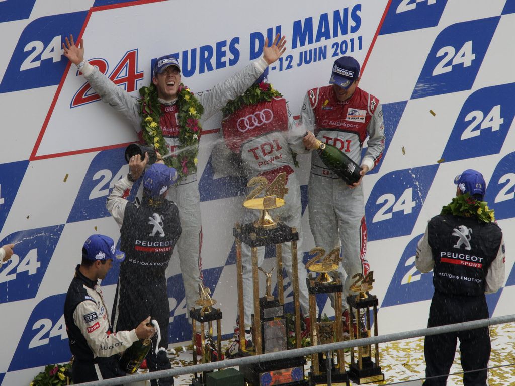 Na Le Mans-u postoje različite tradicije. Jedna od najdužih je mahanje francuskom državnom trobojkom kojom se označava početak trke. To je obično posle preleta aviona iznad Le Mans-a koji ispuštaju plavi, beli i crveni dim u bojama zastave Francuske. Slična tradicija podrazumeva mahanje svim signalnim zastavama od strane sudija pored piste tokom poslednjeg kruga trke koji tako čestitaju pobednicima i svim ostalim vozačima. Na ovoj trci poznato je i slavljeničko prskanje šampanjcem od strane pobedničkog vozača koji slavi pobedu umesto da ga popije. Kada je Dan Gurney osvojio trku 1967. sa suvozačom A.J. Foyt-om, dva vozača su se popela na pobedničko postolje i Gurney je isprskan šampanjcem. Gledajući dole video je generalnog direktora kompanije Ford, Henri Ford-a II, vlasnika ekipe Carroll Shelby-ja i njihove supruge kao i nekoliko novinara koji su predviđali katastrofu na trci za pobednički duo. Gurney je protresao flašu šampanjca i isprskao sve okolo uspostavljajući pobedničku tradiciju ponovo usvojenu u narednih 40 i više godina. Gurney, međutim, uz autogram daje flašu šampanjca fotografu magazina LIFE Flip Schulke-u koji je koristio mnogo godina kasnije kao lampu. On je, međutim, nedavno vratio istu flašu Gurney-u koji je sada drži u svom domu u Kaliforniji.