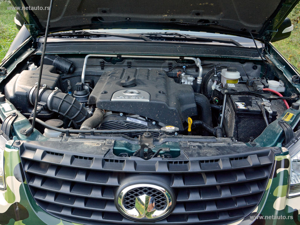 Za pogon je upotrebljen dvolitarski dizel motor. Nepune dve litre radne zapremine motora smeštene su u četiri cilindra. Za ubrizgavanje goriva stara se sistem common rail, dok je za podizanje snage zadužen neizbežni turbo punjač na izduvne gasove kao i izmenjivač toplote „vazduh – vazduh“, poznatiji kao intercooler. Primena ove najsavremenije tehnologije obezbedila je zdravih 139 KS. Motor se odlikuje visokom kulturom rada, kao i primerenom elastičnošću, koja je malo narušena ispod 1.500 obrtaja u minuti, što je najverovatnije posledica velike mase praznog vozila. Prenos snage je na zadnje točkove, a po potrebi je dostupan i pogon na prednje točkove koji može da se izabrati preko tastera na centralnoj konzoli. Moguć je izbor između 4wd high i 4wd low prenosa (potonji je „redukovan“). Ovi sistemi garantuju dobru prohodnost vozila i sposobnost dobre trakcije, čemu doprinosi i minimalno odstojanje od tla od 194 mm. Po želji kupca, može da se dobije vozilo kod kojeg je ovo odstojanje i veće – 254 mm. Prednji napadni ugao od 30 stepeni, kao i odlazni od 24 stepena garantuju dobru prohodnost po zahtevnijim terenima.