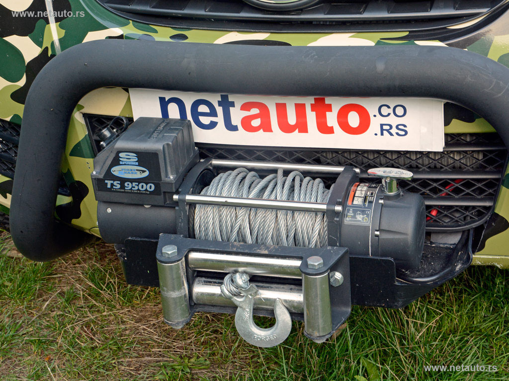 Na prednjem kraju vozila dominiraju velike svetlosne grupe, kao i masivni branik i široki usisnik vazduha. Treba istaći da je testirano vozilo posedovalo i vitlo-čekrk na prednjem delu kojim se komanduje putem posebnog daljinskog upravljača. Pored toga, na desnom krilu nalazio se i usisnik vazduha, popularni „snorkel“ koji omogućava prolaz kroz dublju vodu, bez straha od hidroudara motora zbog dospevanja vode u usisni kolektor motora.