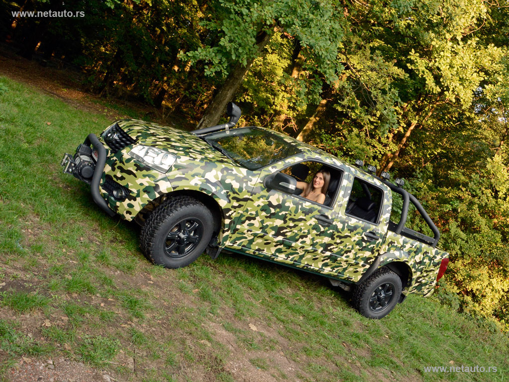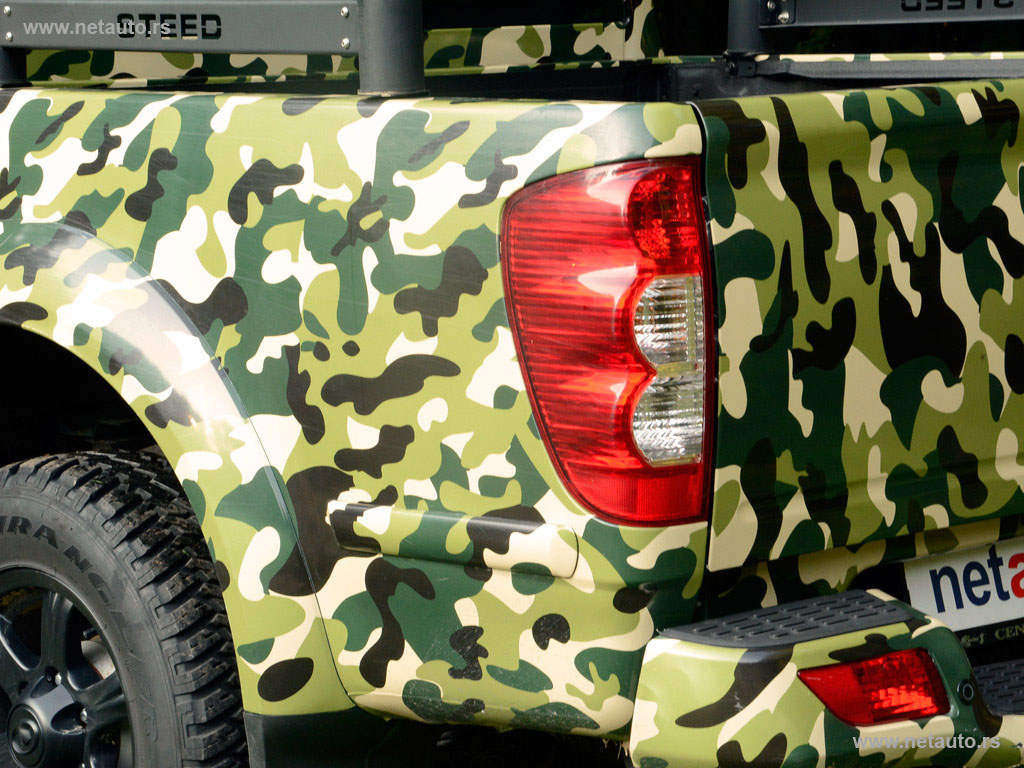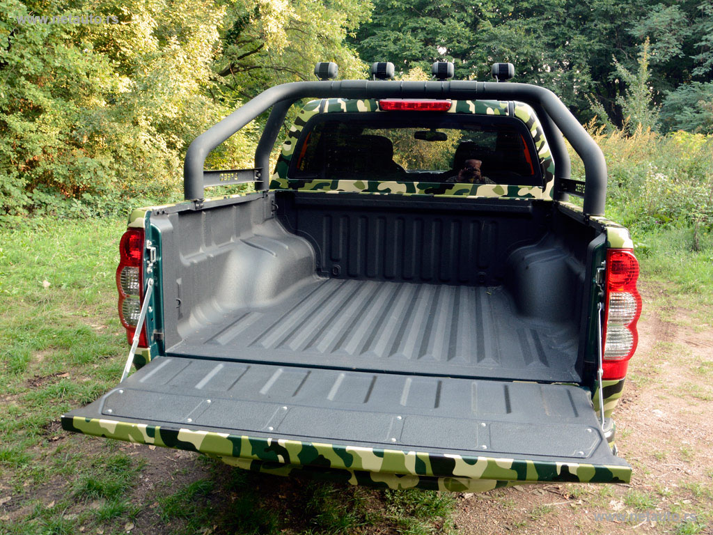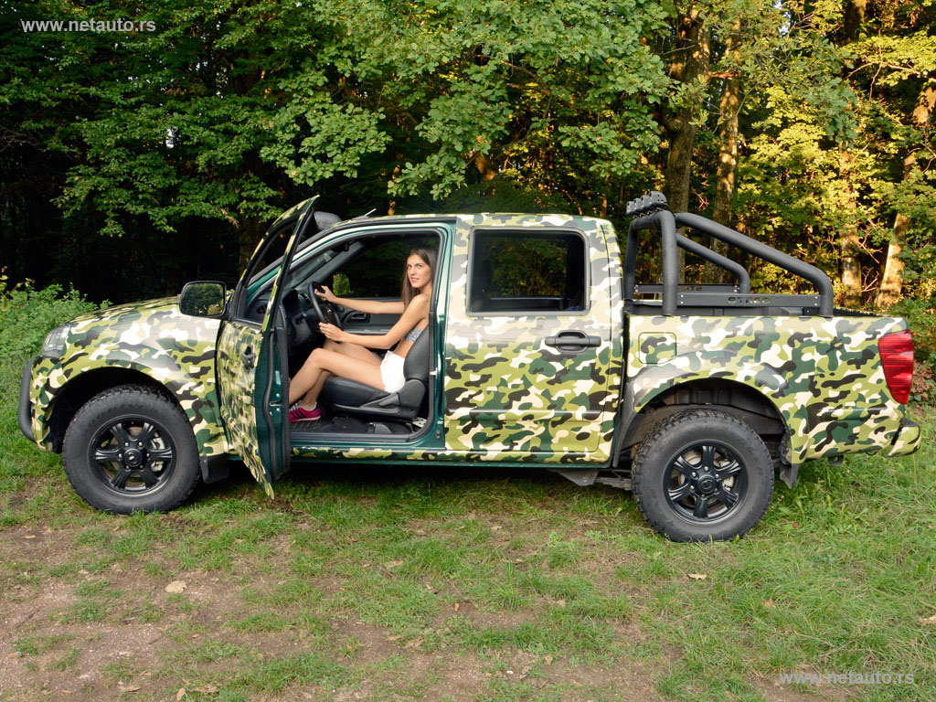 5.040 x 1.800 x 1.730 mm, međuosovinsko rastojanje 3.050 mm, dimenzije tovarnog prostora 1.380 x 1.460 x 1.730, klirens vozila 200 mm, prilazni ugao 30°, silazni ugao 24°, masa praznog vozila 1.880 kg |