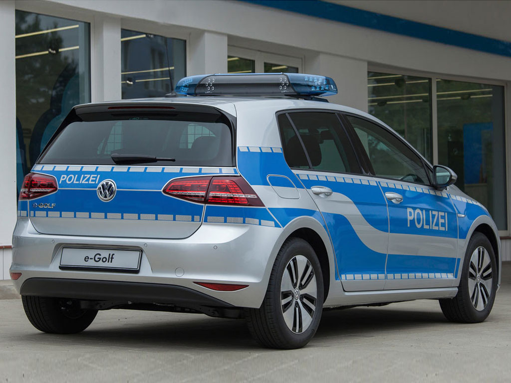 Pored serijske verzije novi e-Golf marke Volkswagen sada je u Nemačkoj u ponudi i kao posebno opremljen policijski automobil. Kompaktan automobil, koji je u potpunosti prikladan za intervencije, pored tipične plavo-srebrne boje karoserije opremljen je i posebnim signalnim sistemom, kao i digitalnim radio signalom. Pred stupanje u nemačku policijsku službu, e-Golf proslavio je svoju svetsku premijeru 9. septembra 2014. godine na Međunarodnom stručnom sajmu policijske opreme u Leipzigu.