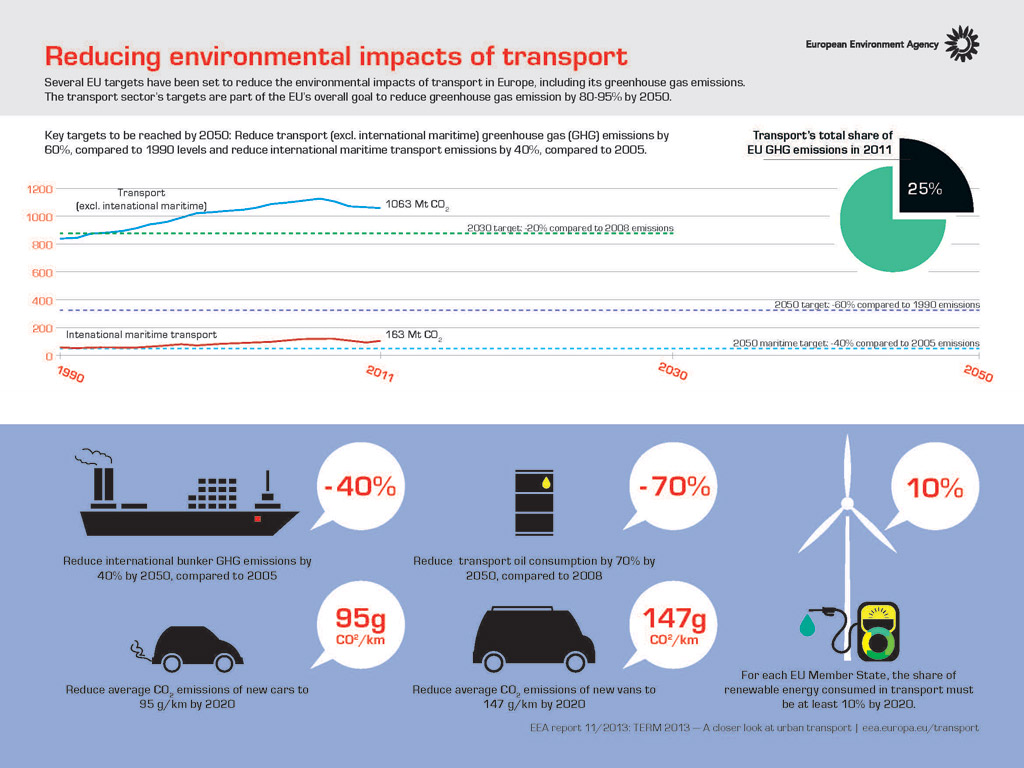 Prema evropskoj Direktivi o nacionalnim granicama emisije, članice EU imaju svoje limite za emisiju četiri zagađivača: sumpor dioksida (SO2), azotnih oksida (NOx), amonijaka (NH3) i nemetanskih isparivih organskih jedinjenja (NMVOC). Prve analize zvaničnih podataka pokazale su da je u 2012. godini 11 članica premašilo barem jedan limit u poređenju sa deset zemalja u 2011. godini. Drumski saobraćaj zaslužan je za oko 40% ukupne emisije azotnih oksida u EU i jedan je od vodećih faktora koji stoji iza velikog broja slučajeva prekoračenja emisije azotnih oksida. Statistike pokazuju da smanjenje emisije azotnih oksida od strane sektora drumskog saobraćaja u poslednje dve decenije nije bilo tako veliko kao što je predviđano.